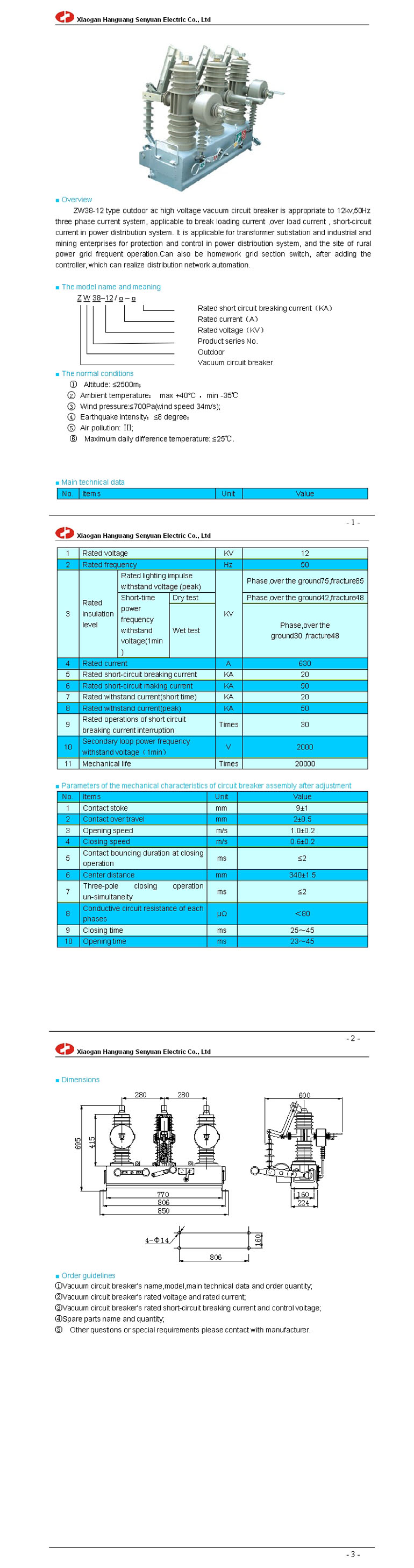 | ZW38-12 outdoor ac high voltage vacuum circuit breaker | |