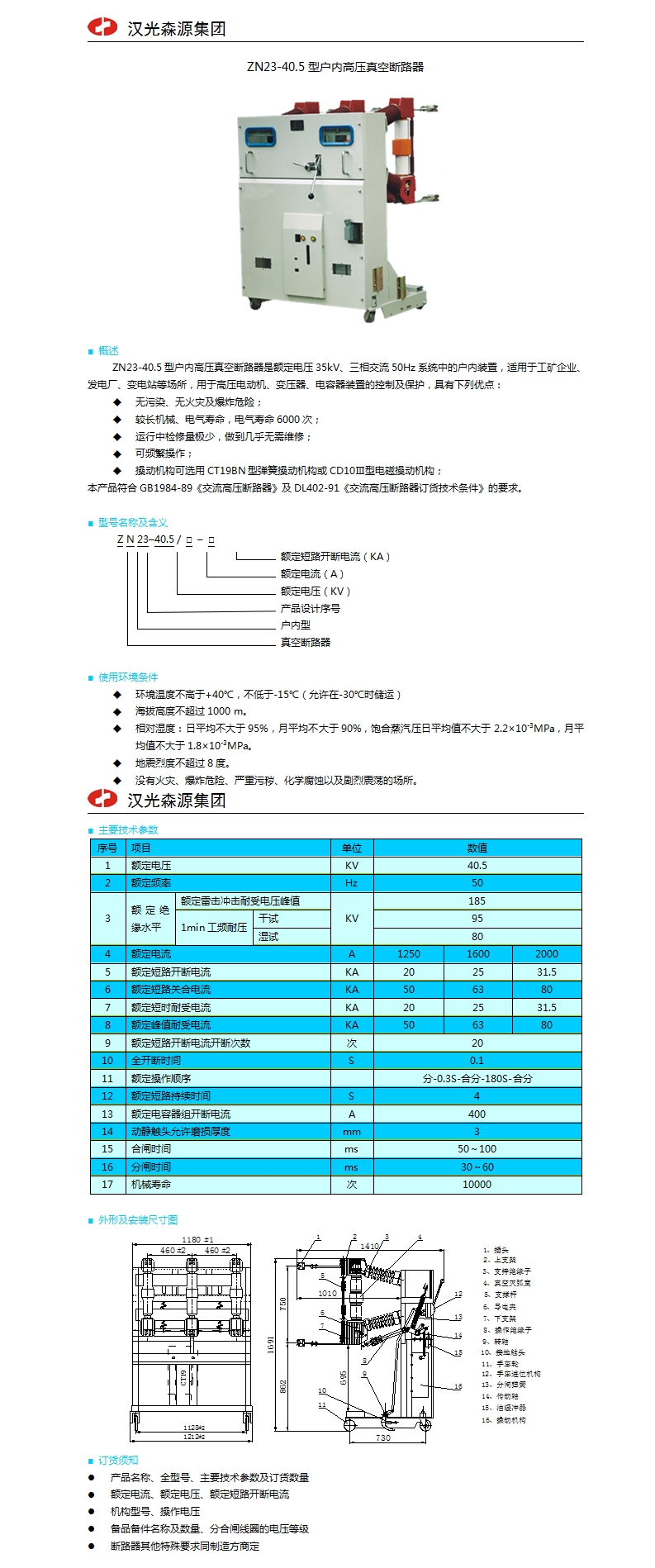 ZN23-40.5型戶內(nèi)高壓真空斷路器
