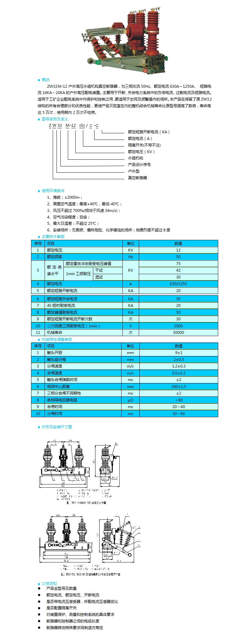 | ZW32M-12型永磁機(jī)構(gòu)戶(hù)外高壓真空斷路器 | |