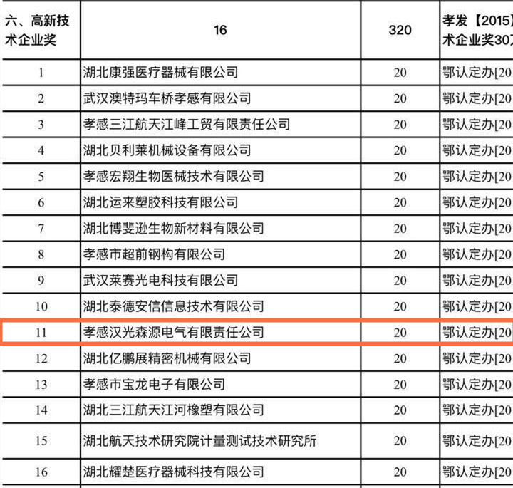 熱烈慶賀孝感漢光森源電氣有限責(zé)任公司在政府優(yōu)質(zhì)企業(yè)評(píng)選活動(dòng)中榮獲高新技術(shù)企業(yè)獎(jiǎng)、知識(shí)產(chǎn)權(quán)示范企業(yè)以及工業(yè)企業(yè)發(fā)展壯大獎(jiǎng)三大獎(jiǎng)項(xiàng),并喜獲共計(jì)26萬(wàn)元作為企業(yè)持續(xù)發(fā)展戰(zhàn)略資金。